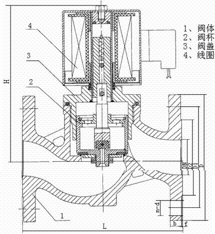 本閥為分步動(dòng)作直接導(dǎo)式常閉電磁閥,線圈通電后銜鐵先帶動(dòng)小閥開(kāi)啟,大閥在所形成的介質(zhì)壓差和電磁力的作用下而開(kāi)啟。線圈斷電,銜鐵部件復(fù)位,大小閥利用介質(zhì)壓力而緊密關(guān)閉。